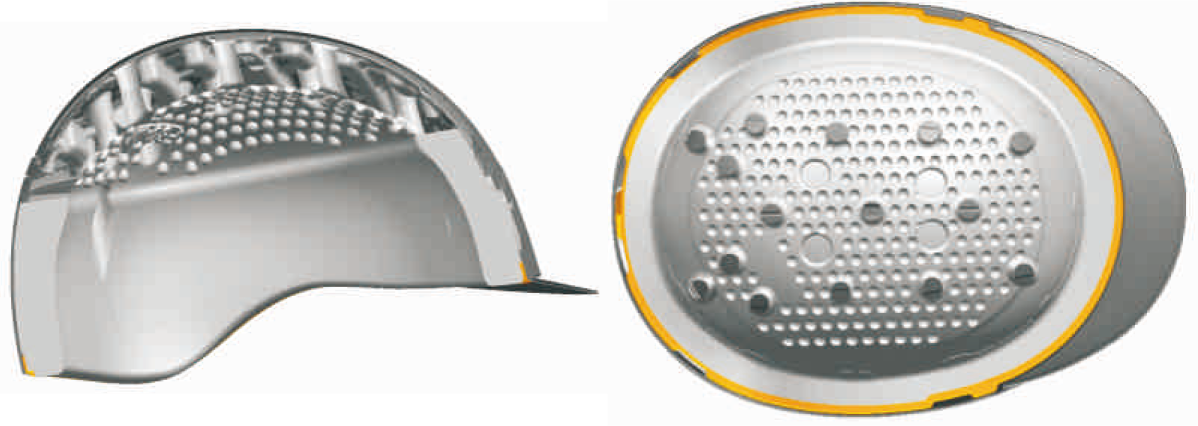 1.头盔有数百个半球,在泡沫上有15个通风孔,不仅可以起到减震效果,而且在顶部起到很好的通风效果。(详见专利)